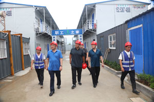 7月3日上午,山東澤華集團(tuán)董事長、總經(jīng)理王成喜,中房建工副經(jīng)理趙亮,親臨集團(tuán)公司泰安學(xué)府春天桃李園重點(diǎn)項(xiàng)目,在炎炎夏日,為奮戰(zhàn)在生產(chǎn)一線的職工送去一份誠摯的關(guān)懷。集團(tuán)領(lǐng)導(dǎo)首先查看了施工現(xiàn)場,對施工項(xiàng)目進(jìn)展情況進(jìn)行詳細(xì)詢問;然后對職工宿舍、食堂等生活設(shè)施進(jìn)行詳細(xì)了解。集團(tuán)公司董事長、總經(jīng)理王成喜要求,要在保質(zhì)保量完成施工項(xiàng)目的基礎(chǔ)上,加快工程建設(shè)進(jìn)度,強(qiáng)化安全意識、精品意識、工期意識,高標(biāo)準(zhǔn)建設(shè),嚴(yán)控工程施工節(jié)點(diǎn);要以本次外出施工為契機(jī),學(xué)習(xí)先進(jìn)經(jīng)驗(yàn)和做法,進(jìn)一步拓展工作思路,不斷提升外出施工管理能力和水平。并強(qiáng)調(diào),要關(guān)心、關(guān)愛職工日常生活,合理調(diào)整工作時(shí)間,做好后勤保障,注意勞逸結(jié)合,為一線職工提供一個(gè)更加舒適的工作生活環(huán)境。