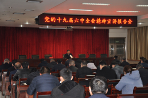 12月14日上午,在山東澤華集團二樓會議中心舉辦黨的十九屆六中全會精神宣講報告會。出席本次宣講活動的領(lǐng)導(dǎo)有新泰市副市長李彬,青云街道黨工委委員、常務(wù)副主任張超,參加會議的還有街道直屬企業(yè)領(lǐng)導(dǎo)班子、中層管理人員。