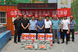 6月27日,山東澤華集團(tuán)工會開展“夏送清涼”活動,集團(tuán)工會主席王功隨,中房建工副經(jīng)理彭煥利,集團(tuán)工會工作人員等,到施工現(xiàn)場慰問一線職工,為奮戰(zhàn)在高溫下的公司職工送去組織的關(guān)懷。