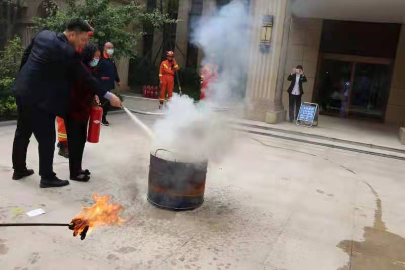 清華園社區(qū)王書(shū)記、青云派出所張所長(zhǎng)先后致辭,表達(dá)了對(duì)各位業(yè)主的歡迎,強(qiáng)調(diào)了此次消防演練的重要性。消防大隊(duì)韓隊(duì)長(zhǎng)講解了樓道存放雜物、電動(dòng)車(chē)上樓充電帶來(lái)的危害性以及相關(guān)消防案列等?,F(xiàn)場(chǎng)講解消防箱內(nèi)設(shè)備使用方法。青云派出所張所長(zhǎng)現(xiàn)場(chǎng)宣傳消防安全知識(shí),消防維保工作人員在消防控制室內(nèi)講解東城田園消防設(shè)施各樓宇組成及分布情況,并現(xiàn)場(chǎng)操作教業(yè)主使用滅火器。隨后開(kāi)展了電梯困人如何自救方面的演練,電梯維保人員帶領(lǐng)業(yè)主們到電梯內(nèi)進(jìn)行模擬電梯困人狀態(tài),講解了電梯被困營(yíng)救、自救的演練操作。