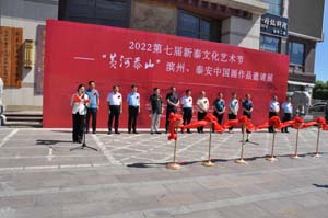 唐家品主席、李瑞平主席、蘇永濤主任、田希婷主席、孫黎主席、李玉泉主席、孫成剛主席、周典紅部長(zhǎng)為開(kāi)幕式進(jìn)行了剪彩儀式,2022第七屆新泰文化藝術(shù)節(jié)--“黃河泰山”濱州、泰安中國(guó)畫(huà)作品邀請(qǐng)展盛大開(kāi)幕。