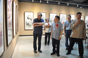 開幕式后,出席活動領導和嘉賓共同觀看了展覽,東營、泰安兩地的藝術家們參加了在新泰文化城舉辦的兩地藝術交流座談會,相互交流繪畫技藝,共同探討筆墨傳承。