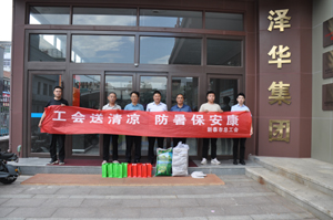 夏日炎炎,驕陽似火,酷暑“烤”驗(yàn)著奮戰(zhàn)在一線的廣大勞動(dòng)者。為切實(shí)維護(hù)好高溫下勞動(dòng)者的安全健康權(quán)益,7月25日下午,新泰市總工會(huì)黨組書記、常務(wù)副主席馬云成,黨組成員、副主席徐西忠,市職工服務(wù)中心科員李文政等領(lǐng)導(dǎo)來到山東澤華集團(tuán)開展“夏送清涼”慰問活動(dòng),為奮戰(zhàn)在一線的集團(tuán)職工送來防暑降溫物品,將市總工會(huì)“娘家人”的關(guān)心關(guān)懷送到職工心坎上。集團(tuán)公司黨委書記牛洪起,集團(tuán)紀(jì)委書記、工會(huì)主席王功隨陪同。