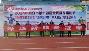 12月22日,2024泰安市第十四屆全民健身運動會暨中國體育彩票新泰“山東澤華杯”八人制足球俱樂部聯(lián)賽”在新泰市體育中心落下帷幕。