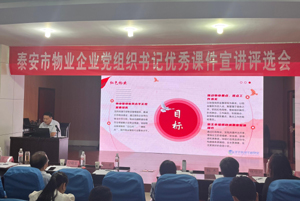 為深入學(xué)習(xí)貫徹習(xí)近平新時(shí)代中國特色社會(huì)主義思想和黨的二十大精神,提升泰安市物業(yè)行業(yè)黨建工作水平,泰安市物業(yè)服務(wù)行業(yè)黨委組織開展泰安市物業(yè)企業(yè)黨組織書記“優(yōu)秀課件”評(píng)選活動(dòng)。經(jīng)前期推薦、申報(bào)與初審,華通物業(yè)提報(bào)的課件《強(qiáng)化黨建引領(lǐng) 夯實(shí)紅色物業(yè)發(fā)展根基》成功入圍決賽,獲得現(xiàn)場宣講資格。