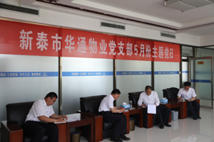 5月25上午,新泰市華通物業(yè)管理有限公司黨支部在山東澤華集團(tuán)三樓接待室召開5月份“主題黨日”活動,華通物業(yè)黨支部書記任守良、部分黨員及黨務(wù)工作者參加了本次會議。會議由公司黨支部書記任守良主持召開。