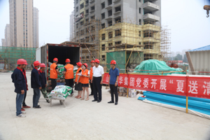2019年7月23日上午,山東澤華集團(tuán)黨委書(shū)記田清坤、副總經(jīng)理兼工會(huì)主席周建根、山東中房建工副總經(jīng)理彭利帶領(lǐng)黨員志愿服務(wù)隊(duì)、青年志愿服務(wù)隊(duì)等有關(guān)人員冒著高溫酷暑,深入施工一線慰問(wèn)一線員工,為奮戰(zhàn)在一線的施工人員送上一份“清涼”,送上一份關(guān)愛(ài)。(喬田利)