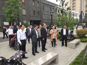 在王君書記的介紹下,參觀了清華園社區(qū)的“兩吧-兩家-四驛站”。隨后來到東城田園,先后視察了小區(qū)的紅色樓宇、物業(yè)服務(wù)中心、營銷中心等,在物業(yè)服務(wù)中心駐足時(shí),王君書記從強(qiáng)黨建、優(yōu)服務(wù)、重互動(dòng)三方面對(duì)華通物業(yè)公司的紅色物業(yè)建設(shè)作了詳細(xì)介紹。
